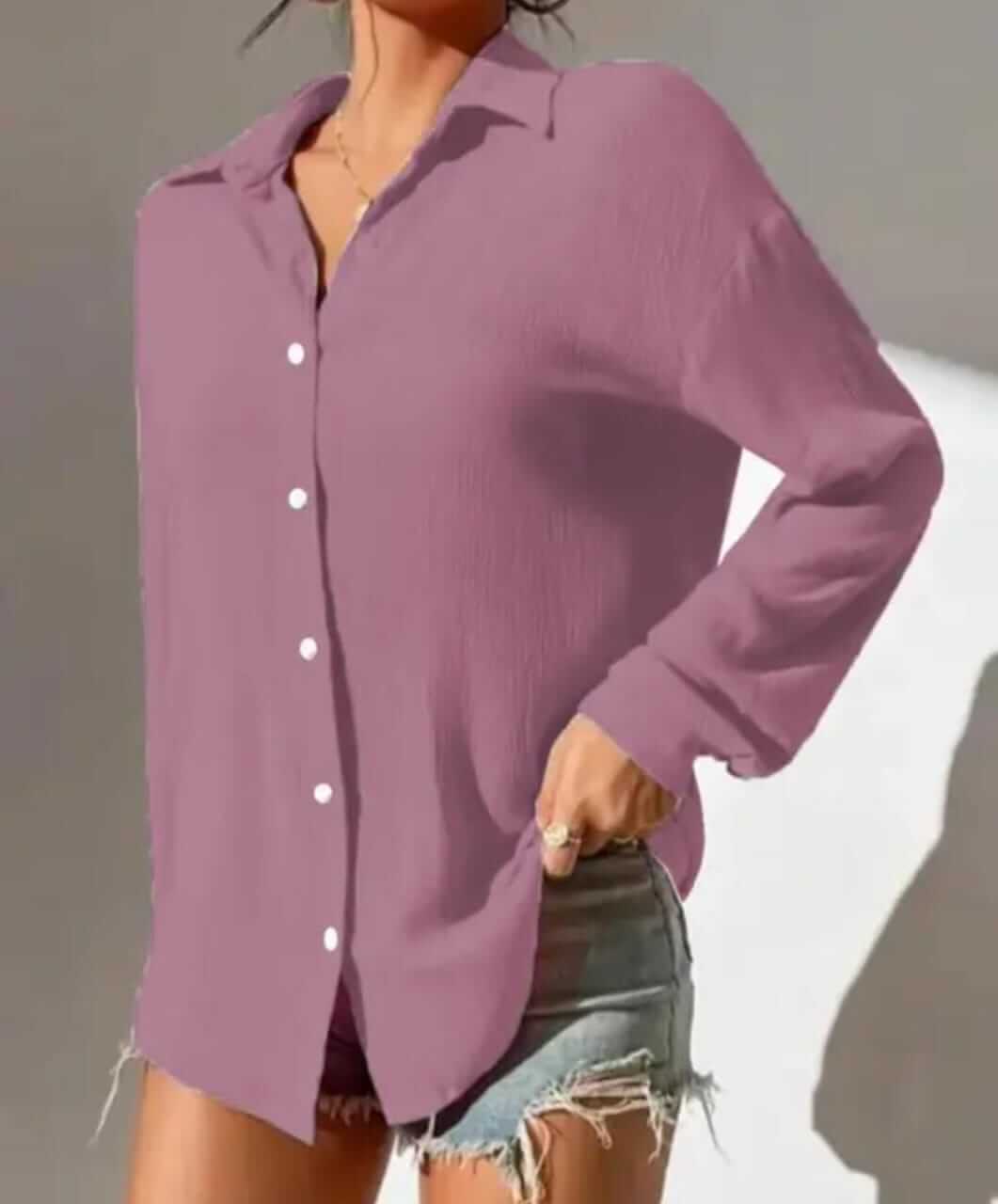 This women’s solid purple button-down shirt is crafted from lightweight, breathable fabric for all-day comfort. Featuring a relaxed fit and full-length sleeves, it offers a stylish yet effortless look. The classic collar and front button closure make it versatile for casual wear, office styling, or layering over innerwear. Perfect for both summer and transitional seasons.